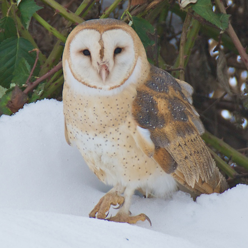 Barn Owls bob their heads and weave back and forth, giving them a spooky appearance. They hunt mostly at night, flying low over open ground, listening and watching for prey. Their vision is adapted for low light levels, and their hearing is highly precise. Barn Owls can accurately locate prey entirely by sound and strike successfully in total darkness. No other animal tested has as great an ability to locate prey by sound.