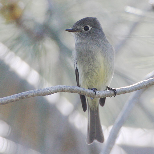 These aerial foragers are found high in the canopy where they watch from a perch and fly out to catch prey in mid-air, then return to the perch to eat. They sometimes forage from lower perches, gleaning prey directly off the foliage, or hunting on the ground. The last two foraging styles are more common early in the breeding season. Both Hammond's and the similar Dusky Flycatchers wag their tails in a slow, up-down motion. (This behavior may help narrow down the choices when trying to distinguish among the Empidonax flycatchers).