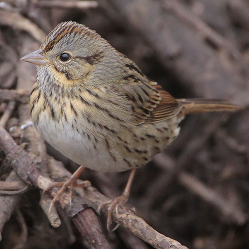 They do not join flocks of their own species, but one or two are often found flocking with other sparrows in winter and during migration. These secretive birds feed on the ground under cover in dense blackberry tangles and other brush.