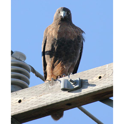 Red-tailed Hawks are adapted for soaring and will spend long periods riding thermals, looking for prey or migrating. They also use a sit-and-wait style of hunting, scanning for prey from high perches. They are commonly seen along roadsides or soaring over open fields.