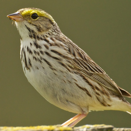 The Savannah Sparrow is found in open habitats ranging from grassy coastal dunes, to farmland. They inhabit relatively small patches of grassland, and will even use disturbed and weedy areas in the open. They are common in grassy areas around towns and at the edges of irrigated fields, especially mint or alfalfa.