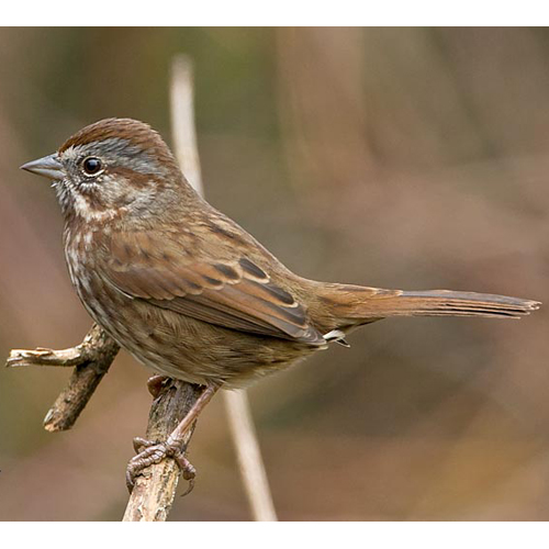Song Sparrows are solitary and highly territorial during the breeding season, but are found in loose flocks during migration and winter. They forage mostly on the ground, sometimes scratching the soil. They will come to bird feeders with adequate cover close by. These birds sing almost all year, and respond to 'pishing.'